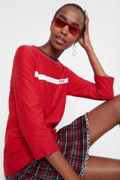 Desigual Piros 3/4-ES Ujjú Póló (L) (343673)