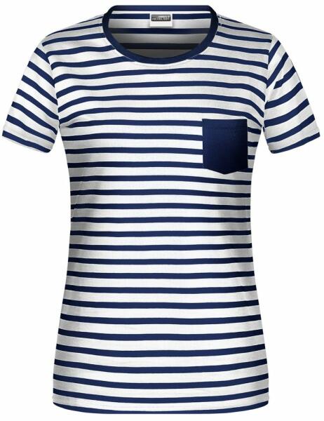James & Nicholson (Daiber) Női csíkos biopamut póló 8027 - Fehér / sötétkék | 2XL (1-8027-1781720)