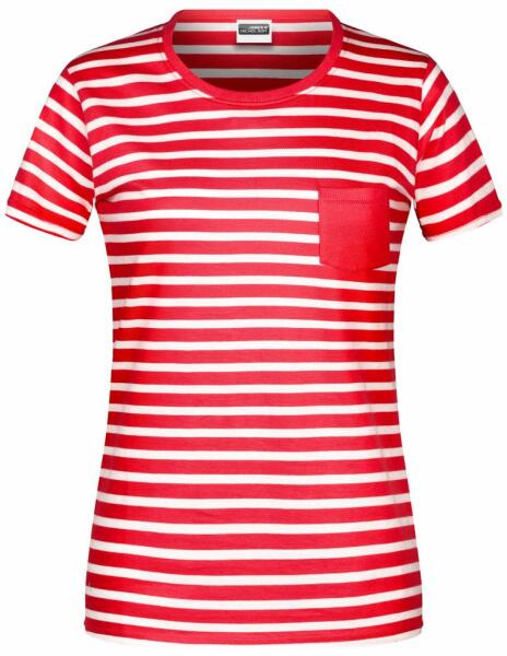 James & Nicholson (Daiber) Női csíkos biopamut póló 8027 - Piros / fehér | XS (1-8027-1781709)