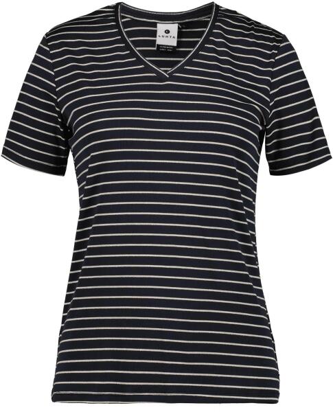Luhta női Élvezd az új szezon minden pillanatát stílusosan a Luhta Holttila női pólóban! A V-nyakrész és a Regular Fit szabás minden típusú alkaton hízelgően mutat, ugyanakkor biztosítja teljes mozgásszabadságod. A minimalista design és a csíkos minta könnyed sikket csempésznek összeállításaidba. A felső puha tapintású, lélegző, újrahasznosított poliészter anyaga gondoskodik maximális komfortodról egész napos viselet közben is. Párosítsd kedvenc Luhta nadrágoddal a tökéletes megjelenésért! A hátközép hossza 62 cm.