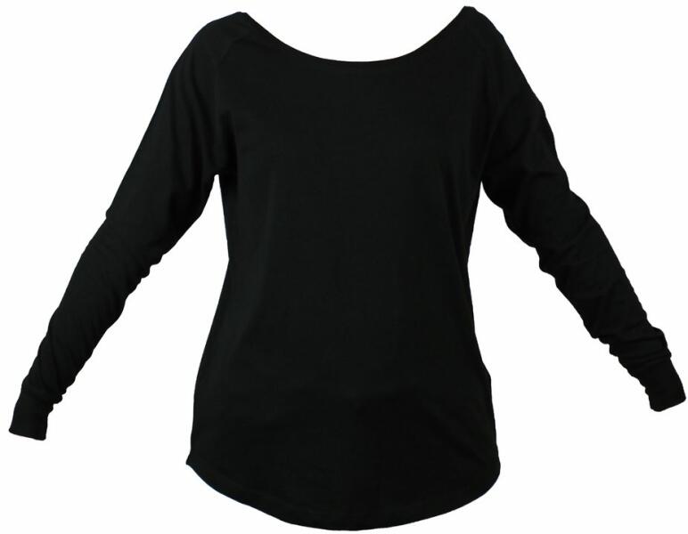 Modern, hosszabb női póló lezser szabással, hosszú raglan ujjakkal és elasztikus bordás mandzsettával. A póló alsó szegélye lekerekített, és a hátsó része pedig kissé hosszabb. Könnyű és fésült organikus biopamutból készült. Divatos, széles csónaknyakú a vállak felett és praktikus, letéphető címkével rendelkezik. A póló oldalsó varrásokkal és dupla varrással rendelkezik.